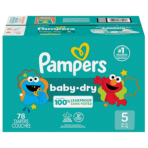 Pampers Sesame Street Size 5 Diapers (27+ Lbs (12+ Kg)) Super Pack 78 Ea