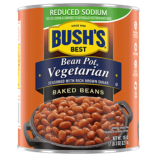 Whether it’s hot dogs, hamburgers, turkey burgers or a meat-less favorite on your table, it only makes sense that Bush’s Baked Beans go on the side. Our Bean Pot Reduced Sodium Vegetarian Baked Beans are tender navy beans, slow-simmered in rich brown sugar and a signature blend of spices for a sauce that’s high in flavor but has 25% less sodium than our regular Baked Beans. So the next time you’re fixing up a big meal, you can be sure you’ve got perfectly sweet beans to go along with every savory bite.