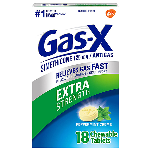 Gas-X Extra Strength Chewable Gas Relief Tablets with Simethicone 125 mg deliver fast relief of gas pressure, bloating and discomfort. These chewable tablets go to work in minutes, rescuing you from embarrassing situations and helping you get back to feeling like yourself. Gas-X uses 125 mg simethicone to break up gas bubbles in your stomach and intestines. Once this trapped gas is broken down, your body can deal with the gas naturally. These portable and easy to take simethicone chewable tablets come in tasty peppermint creme flavor. Adults and children 12 years of age and older may chew one or two antigas chewables as needed, not to exceed four gas tablets in 24 hours unless directed by a doctor. Trust Gas-X, the #1 doctor recommended OTC anti-gas product.*