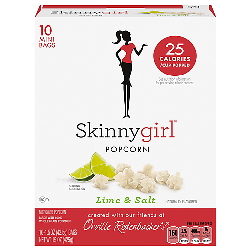 Orville Redenbacher’s Skinnygirl Lime and Salt Popcorn is a delicious and premium microwave popcorn that gives you a lighter twist on salted popcorn. With 25 calories per cup popped, this popcorn snack pairs classic flavor with a hint of lime for a unique and sensible snacking experience. It is light and fluffy, with a delicious crunch. Orville Redenbacher’s Skinnygirl Lime and Salt Flavored Popcorn is made with 100% whole grain gourmet popcorn kernels and can be enjoyed as gluten free snacks. Ready in minutes, simply follow the directions on the microwavable popcorn mini bags for warm, freshly popped popcorn anytime you want. Enjoy this Orville Redenbacher’s popcorn for TV and movie snacks, game nights or anytime popcorn cravings strike for delicious salty snacks. It’s the perfect microwave popcorn to add a pop of fun to every occasion. Can’t get enough popcorn? Explore Orville Redenbacher’s other microwave popcorn flavors, popcorn seasoning and kernels for a gourmet popcorn experience. Orville Redenbacher’s isn’t just a name, it’s a promise of excellence and authenticity.